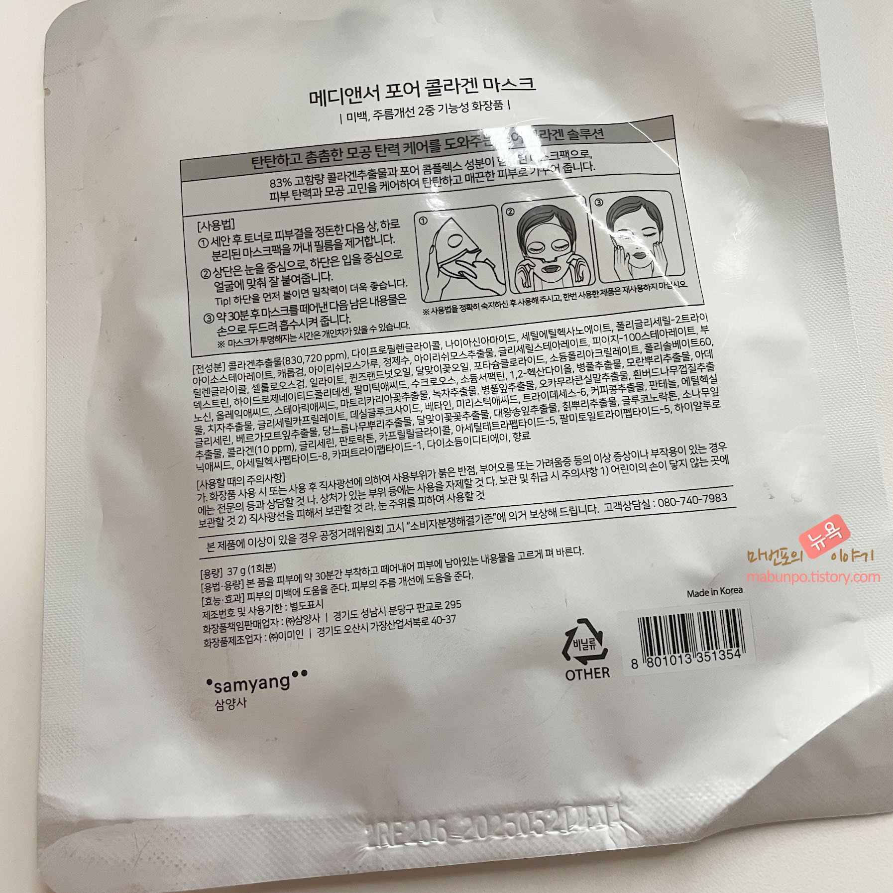 메디앤서 콜라겐 마스크 두 종류를 사용해봤는데